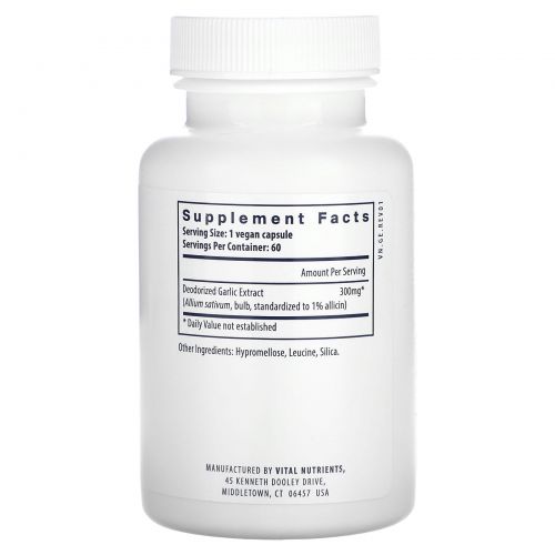 Описание товара Vital Nutrients, Экстракт чеснока, 60 веганских капсул