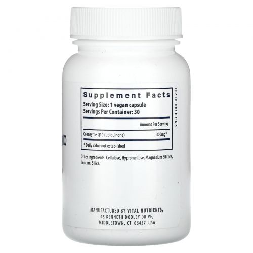 Описание товара Vital Nutrients, Коэнзим Q10, 300 мг, 30 веганских капсул