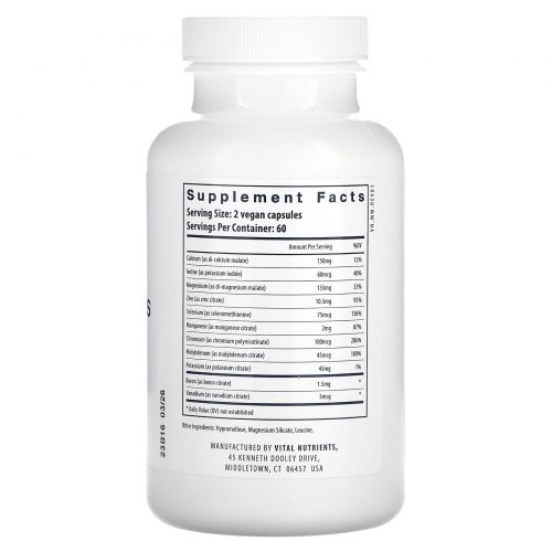 Vital Nutrients, Мультиминералы (без меди и железа), 120 веганских капсул