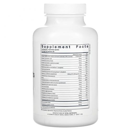 Описание товара Vital Nutrients, мультипитательные вещества (без железа и йода), 180 вегетарианских капсул