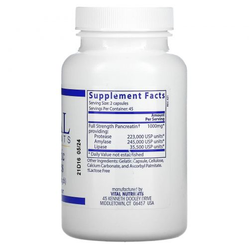 Описание товара Vital Nutrients, Pancreatic Enzymes, 500 mg, 90 Capsules