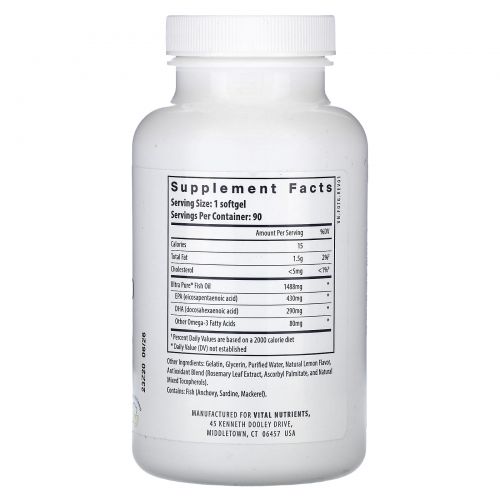 Описание товара Vital Nutrients, ультрачистый рыбий жир 800, в форме триглицеридов, со вкусом лимона, 90 мягких таблеток