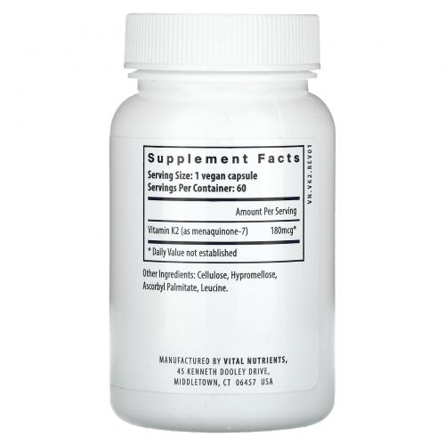 Описание товара Vital Nutrients, Витамин K2-7`` 60 веганских капсул