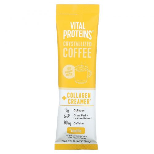 Описание товара Vital Proteins, Crystallized Coffee + Collagen Creamer, Vanilla, 7 Packets, 0.56 oz (16 g) Each