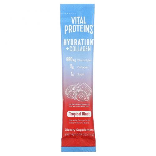 Vital Proteins, Hydration + Collagen, Tropical Blast, 7 пакетиков по 11 г (0,39 унции)