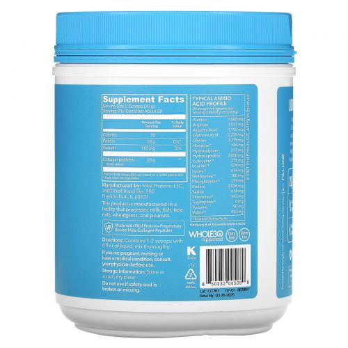 Описание товара Vital Proteins, Пептиды коллагена, без ароматизаторов, 12 унций (567 г)