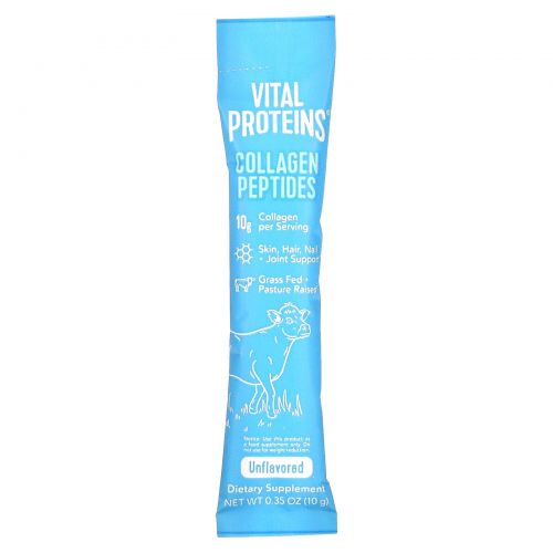 Описание товара Vital Proteins, Пептиды коллагена, произведенные из животных, выращенных на пастбищах и выкормленных травой, без ароматизаторов, 20 отдельных пакетиков (10 г)