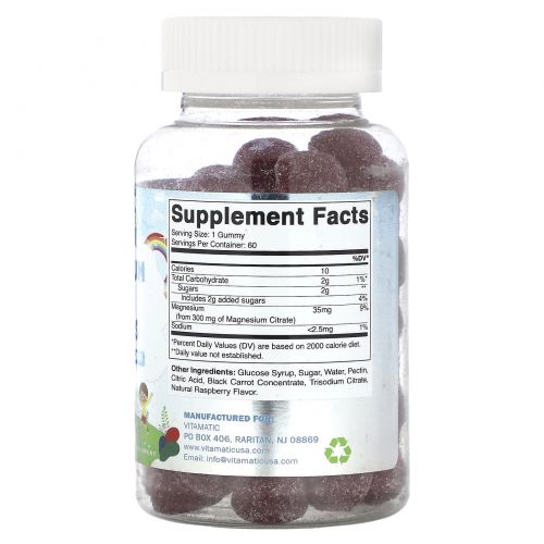 Vitamatic, Для детей, успокаивающие жевательные таблетки с магнием, натуральная малина, 60 жевательных таблеток