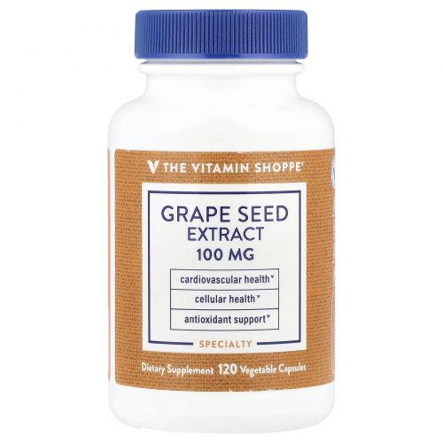 Описание товара The Vitamin Shoppe, Экстракт виноградных косточек, 100 мг, 120 растительных капсул