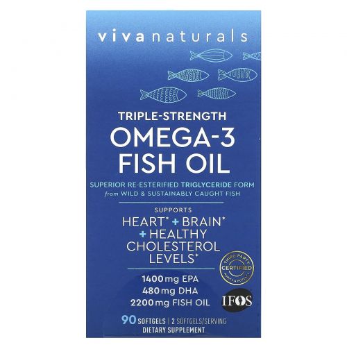 Описание товара Viva Naturals, Рыбий жир с омега-3, тройной силы, 90 мягких таблеток