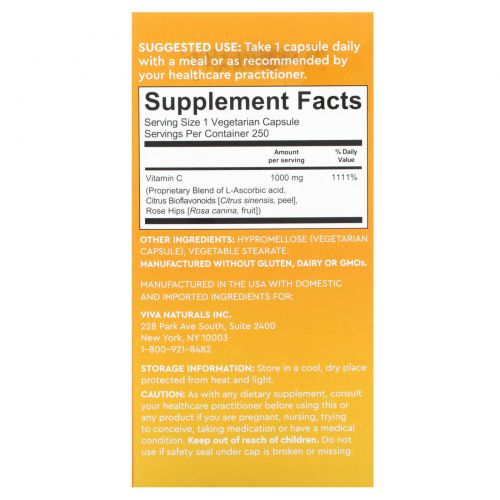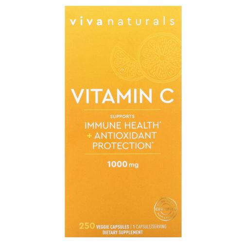 Описание товара Viva Naturals, Витамин C, 1000 мг, 250 растительных капсул