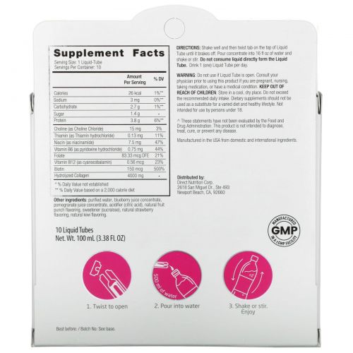 Описание товара Vplab, Ultra Womens Beauty Collagen Liquid, Tropical Fruits, Strawberry & Kiwi , 4,000 mg, 10 Liquid Tubes