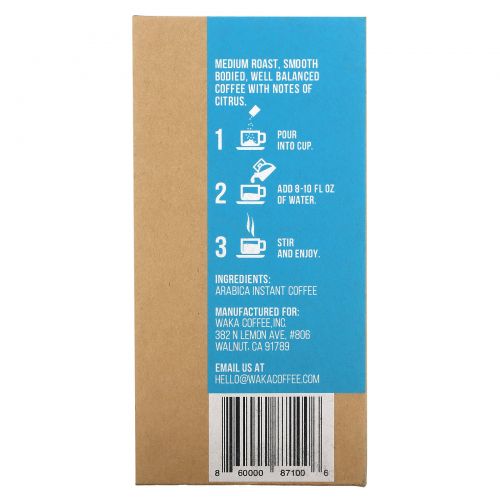 Описание товара Waka Coffee, Растворимый кофе из 100% арабики, колумбийский, средней обжарки, 8 порционных пакетиков по 2,8 г (0,1 унции)