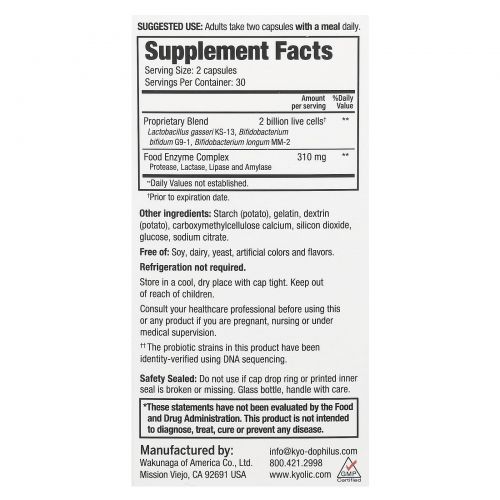 Описание товара Wakunaga - Kyolic, «Кио-Дофилус», пробиотики и ферменты, 60 капсул