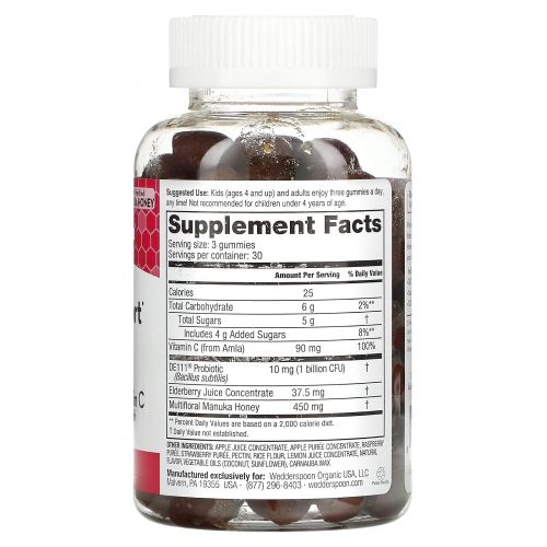Описание товара Wedderspoon, Manuka Honey, Immunity Gummies, Berry, 5 Billion CFU, 90 Gummies