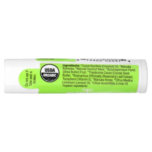 Wedderspoon, Organic Lipcare, мед манука, кокос и лайм, 4,5 г (0,15 унции)
