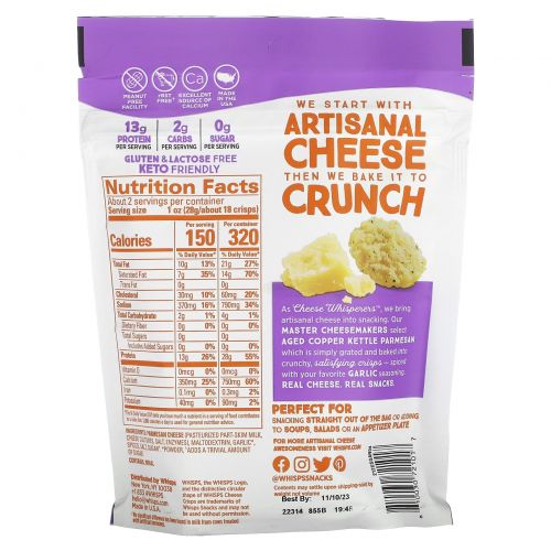Описание товара Whisps, Garlic Herb Cheese Crisps, 2.12 oz ( 60 g)