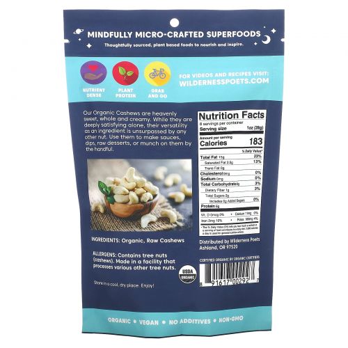 Описание товара Wilderness Poets, целые орехи кешью, 226 г (8 унций)