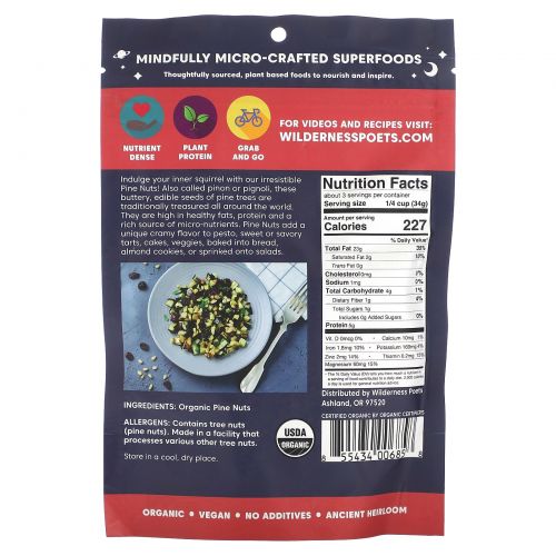 Описание товара Wilderness Poets, Кедровые орехи, 99 г (3,5 унции)