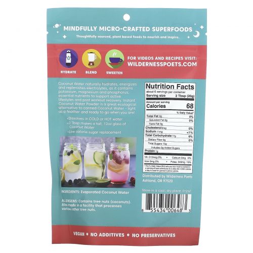 Описание товара Wilderness Poets, Растворимый в воде кокосовый порошок, сублимированный, 113,4 г