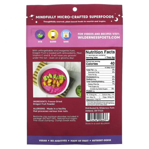 Описание товара Wilderness Poets, Сублимированный порошок питахайи, 3.5 унций (99 г)