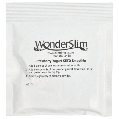 Описание товара WonderSlim, Keto Smoothie, клубничный йогурт, 7 пакетиков по 11 г (0,38 унции)