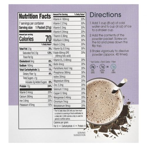 Описание товара WonderSlim, кетогенный коктейль, со вкусом шоколада, 7 пакетиков. 21 г (0,73 унции) каждый