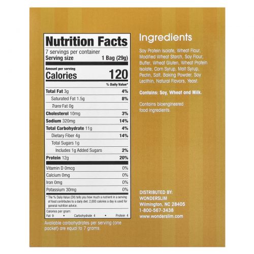 Описание товара WonderSlim, протеиновые крендели, 7 пакетиков по 29 г