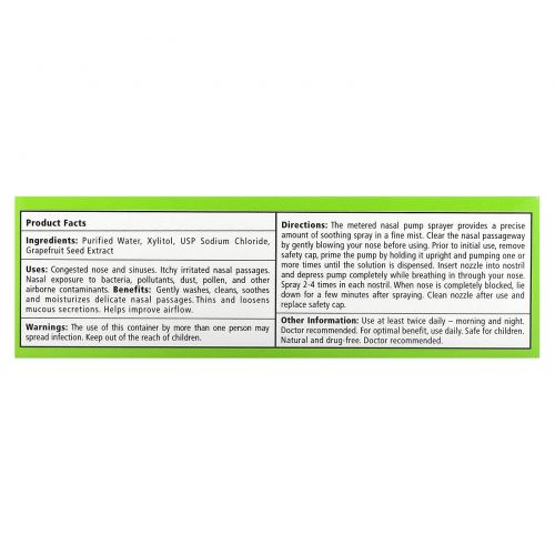 Другие ИнгредиентыОчищенная вода, ксилитол, солевой раствор, экстракт семян грейпфрута (в качестве консерванта).