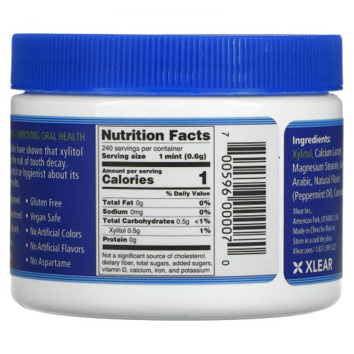 Описание товара Xlear, Spry, мятная жевательная резинка, без сахара, 240 шт., 144 г