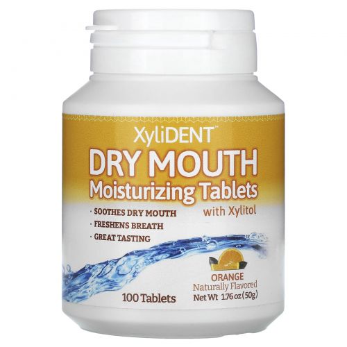 XyliDENT, увлажняющие таблетки от сухости во рту с ксилитолом, апельсин, 100 таблеток