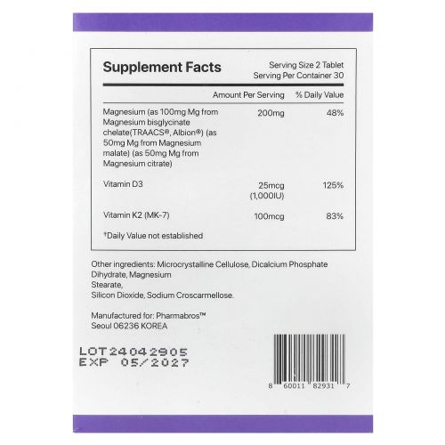 Описание товара YDY, Хелатный магний с K2, 60 таблеток