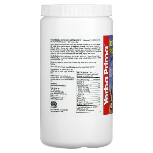 Описание товара Yerba Prima, Органическая цельная шелуха подорожника, 12 унций (340 г)