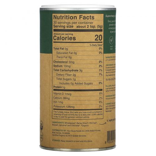 Add 2 tsp to your daily smoothie or 1/2 cup water for a Super Green shot.