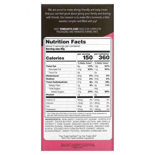 Описание товара YumEarth, Choco Yums Chocolate Candies, Crisped Quinoa, 2.5 oz (70.9 g)