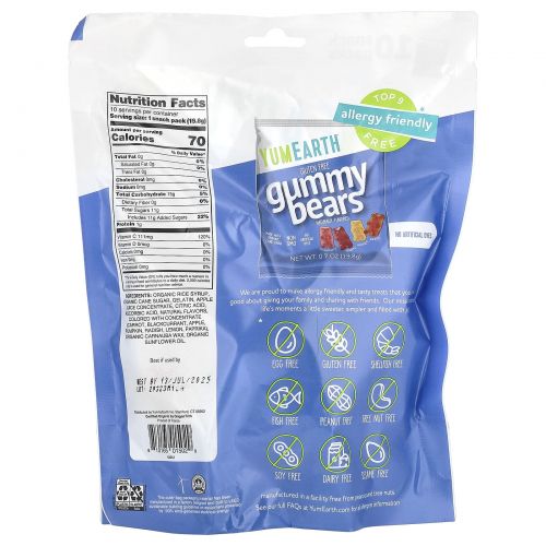 Описание товара YumEarth, Жевательные мишки, Ассорти вкусов, 10 пакетов со снеками, 0,7 унц. (19,8 г) каждый