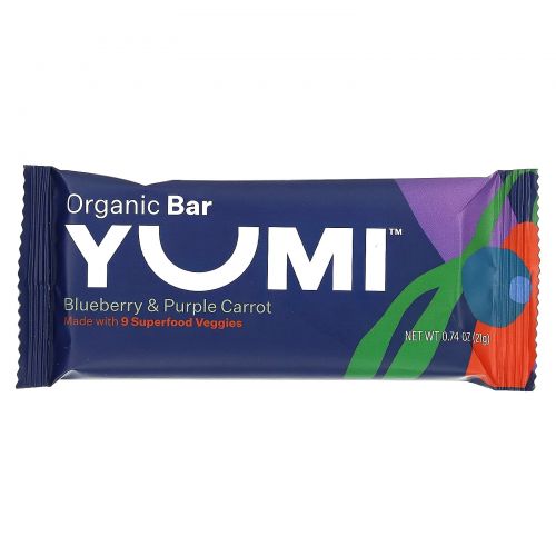Описание товара Yumi, органический батончик, для малышей, голубика и фиолетовая морковь, 5 батончиков по 21 г (0,74 унции)