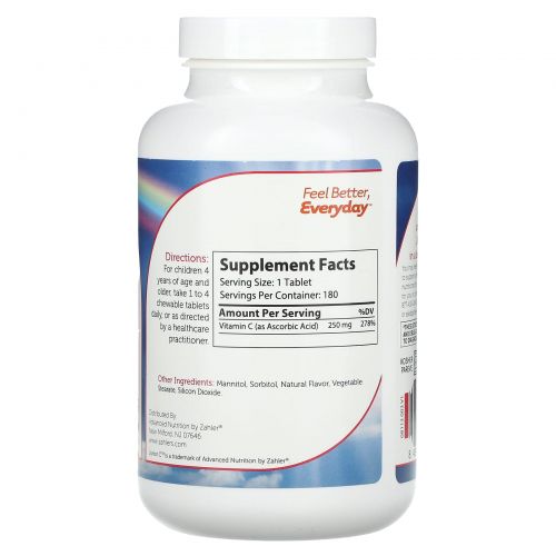 Описание товара Zahler, Junior C, Advanced Chewable Vitamin C, Natural Orange Flavor, 250 mg, 180 Tablets