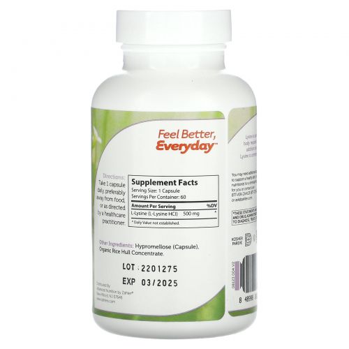 Описание товара Zahler, L-Lysine, 500 mg , 60 Capsules