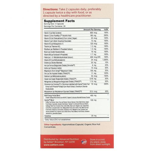 Описание товара Zahler, Mutivitamin Energy, ежедневная мультивитаминная добавка для повышения уровня энергии с enXtra и кордицепсом, 60 капсул