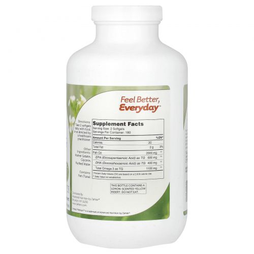Описание товара Zahler, Omega 3 Platinum, усовершенствованный рыбий жир с омега-3, 2000 мг, 360 капсул (1000 мг в 1 мягкой таблетке)