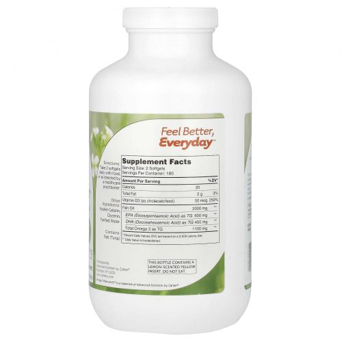 Описание товара Zahler, Omega 3 Platinum+D, продвинутая формула Омега 3 с витамином D3, 3000 мг, 360 мягких таблеток
