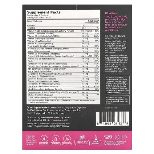 Zahler® Prenatal + DHA - это сбалансированная синергетическая формула, которая обеспечивает тщательно подобранный набор питательных веществ, необходимых вашему развивающемуся ребенку, в оптимальных соотношениях для усвоения, метаболизма и безопасности.