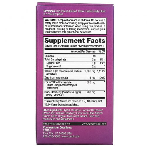 Описание товара Zand, Immune Fast, сладкая бузина, 30 жевательных таблеток
