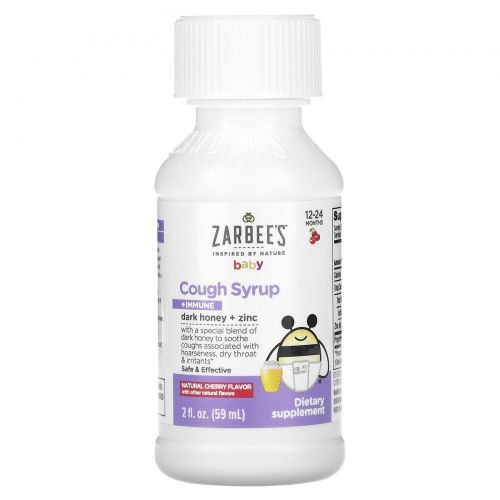 Zarbee's, Baby, сироп от кашля и иммунитета, для детей от 12 до 24 месяцев, натуральная вишня, 59 мл (2 жидк. Унции)