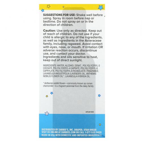 Описание товара Zarbee's, Детский спрей перед сном, ромашка и лаванда, 59 мл (2 жидк. Унции)
