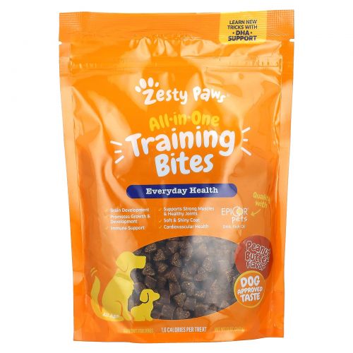 Описание товара Zesty Paws, All-In-One Training Bites, комплекс для тренировок, для собак всех возрастов, арахисовое масло, 340 г (12 унций)