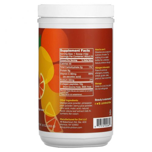 Описание товара ZINT, Sweet Collagen, ананас и апельсин, 283 г (10 унций)