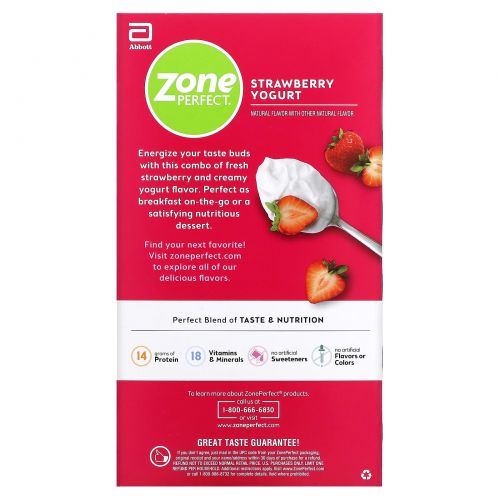 Описание товара ZonePerfect, Питательные батончики, со вкусом клубничного йогурта, 12 батончиков по 1.76 унций (50 г)